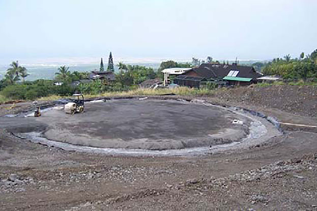 The Kaloko Heights 1 M.G. Honokahau Reservoir tank project consisted of mass grading of tank site, liner, water system, drainage, electrical SCADA system and paving. All work was built to meet D.W.S. Standards.