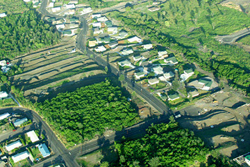 University Heights West is a lovely starter home subdivision off Palani Road in Kailua-Kona. The subdivision has a great location, only 8 minutes from downtown and just 10 minutes from the airport. With lot elevations from 1300 to 1800 feet, the views are spectacular and the evenings are pleasantly cool. Lots are generous in size, many are on cul-de-sacs and ownership is fee simple. E.M. Rivera and Sons’ work on this 62 lot subdivision included the mass grading, asphalt roads & swales, water and septic systems. Lot pad preparation and drainage systems were also done. All work was completed to meet or exceed County Standards. The subdivision also consisted of overhead utilities.