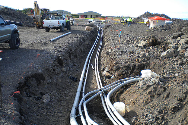The New Wainani Estates Project is a 50 lot Subdivision located just minutes away from the Kona Airport. E.M. Rivera & Sons site work consisted of mass grading, crushing, streets, curbs, gutters, sidewalks, water, drainage systems and all underground utilities including electrical, telephone and cable TV conduits. All work was completed in a timely manner and was built